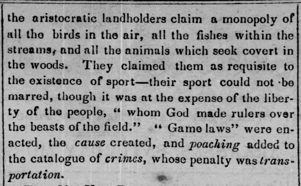 On this date in 1844, the Van Buren newspaper, Arkansas Intelligencer, carried coverage of a debate between former President Martin Van Buren and Kentucky lawmaker Henry Clay over squatters on public lands. During his argument, Van Buren included his opinion of game laws. He claimed that God had given dominion to humans over the animals and the only reason citizens break the game laws was because the government made the laws in the first place. If these types of laws did not exist, then people would not poach.