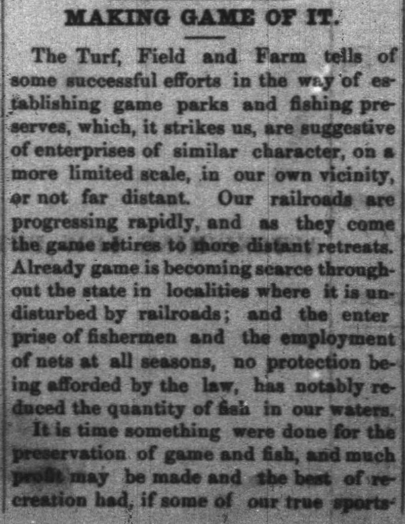 As early as 1873, some observers argued that Arkansas wildlife was disappearing. Some even suggested that authorities should preserve the game and fish somehow. Most Arkansawyers, however, dismissed the notion.