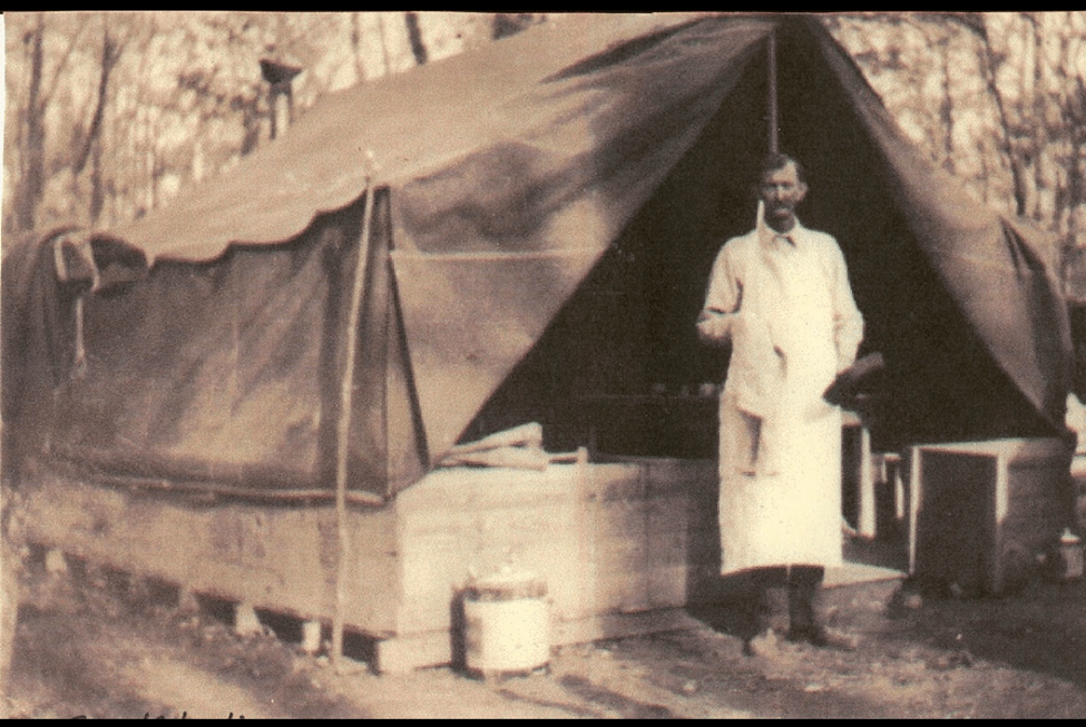 Frank Leslie (b. 1873) was a longtime cook and camp manager for Jacobs Lake Hunting Club On Jacobs Lake NW of Gillett. Today it is known as the Tuff Nutt Hunting Club. Leslie was killed in a train accident in 1896. This picture is from about 1895.