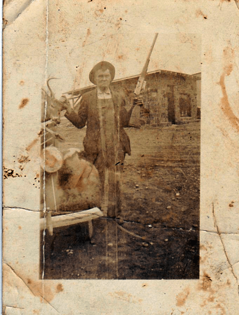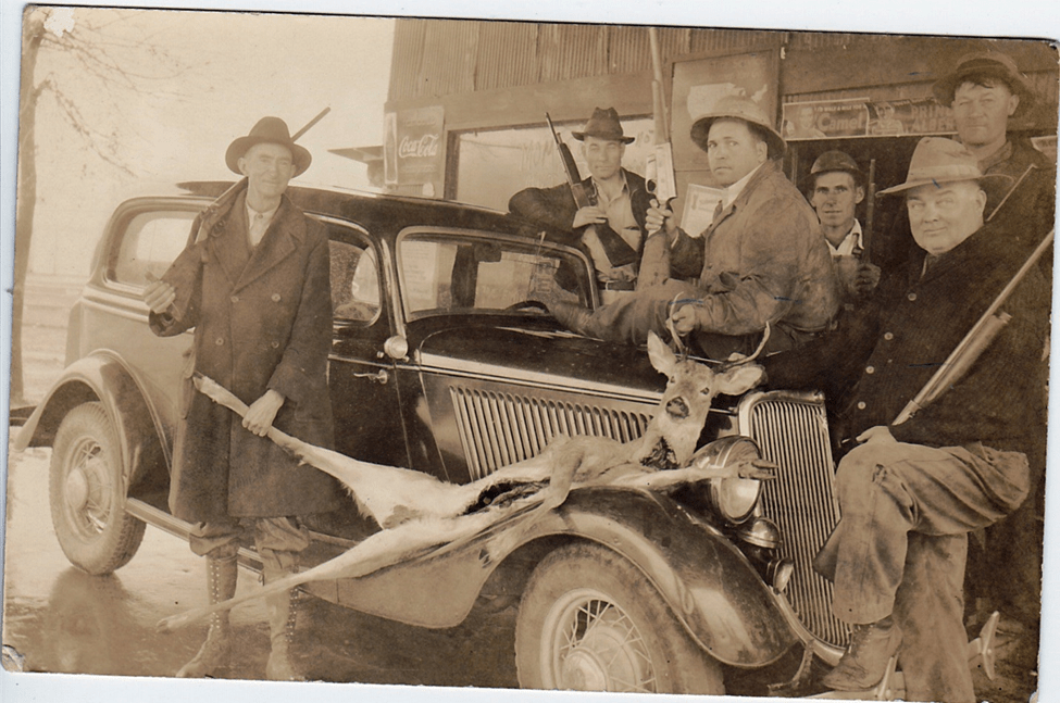 That’s not his vehicle. He didn’t own one and didn’t drive. His son, C.H. Reed said that in 1934, some Armour and Coca-Cola officials came down from Oklahoma City on a hunting trip at Mill Creek. W.E. Reed and Rass Turner were their hunting guides. This photo is of W.E. Reed and the deer he killed on that trip.