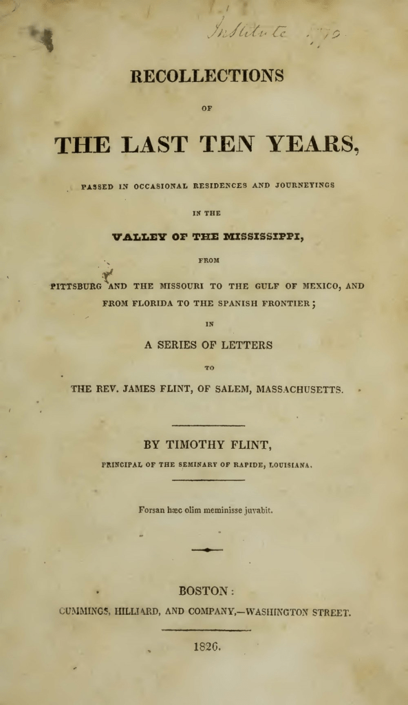 [1] “Journal of the Rev Timothy Flint,” 284-288.