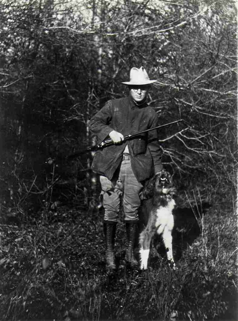 Circa 1925. Dallas County resident and dapper-dresser Joseph Whitright (b. 04 JUL 1900) has two great pictures. He is carrying a bolt-action rifle and a pistol alongside his trusty dog. Whitright has high-laced boots, a hunting coat with oversized pockets, and riding pants.