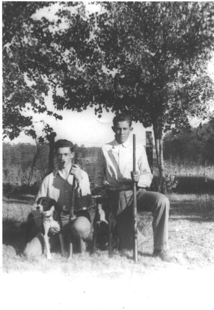 Circa 1937 near Little Black in Randolph County. Murray Samuel Parker (Born on October 4, 1924, d. November 16, 2007) is the young man (about 13 years old) on the right with his hunting dogs and long guns. Murray’s daddy was Charles A. Parker, and his mother was Lillian Cleo.